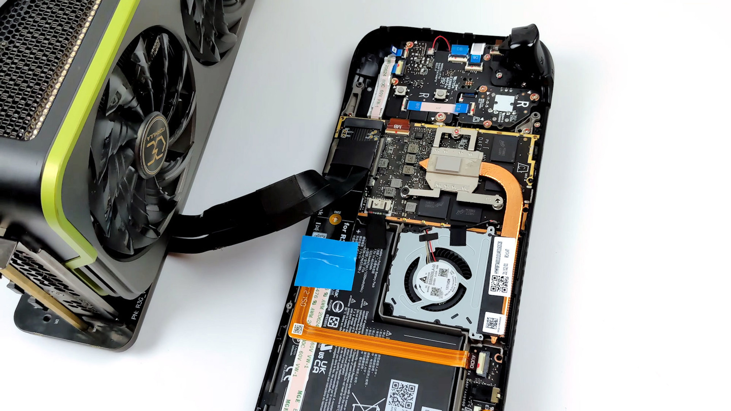 由于 Steam Deck 没有雷电 4 接口,ETA Prime 通过 M.2 插槽连接了 RX 6900 XT 显卡坞,这样一来只能使用 microSD 作为存储设备。