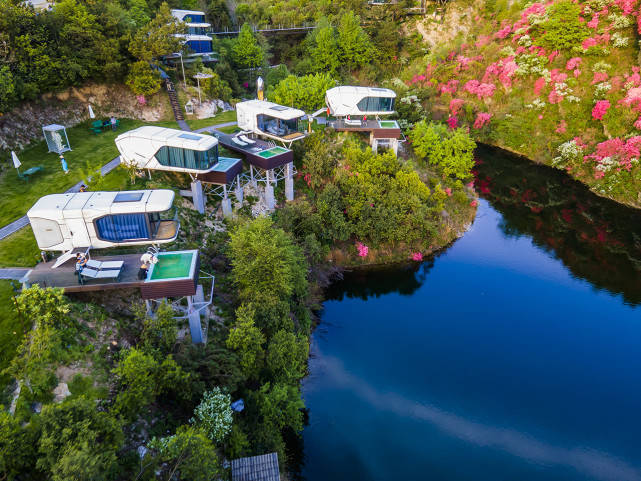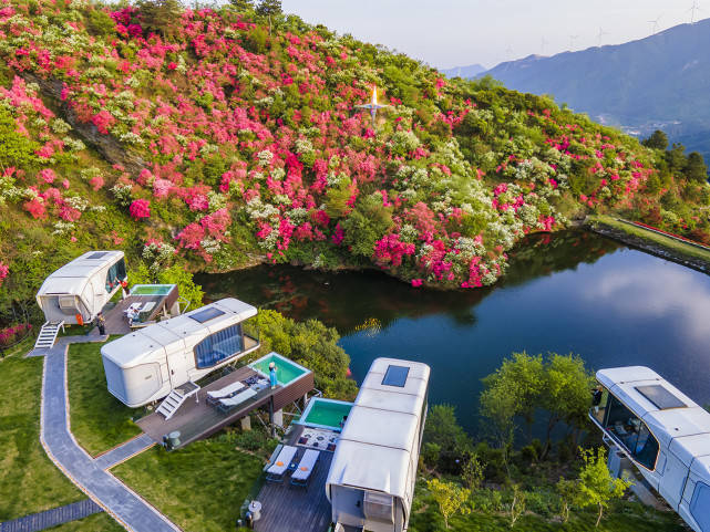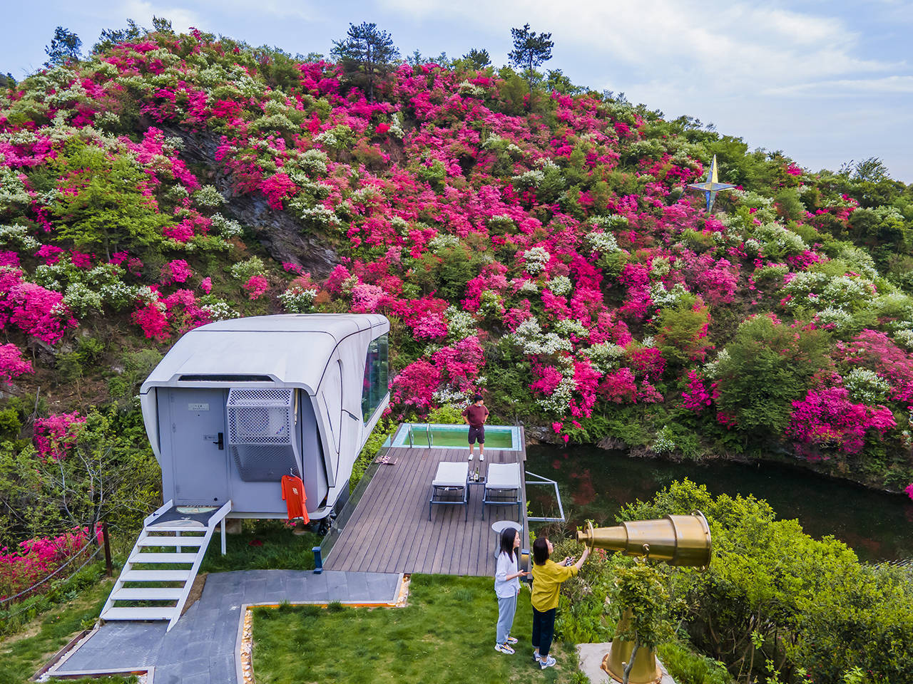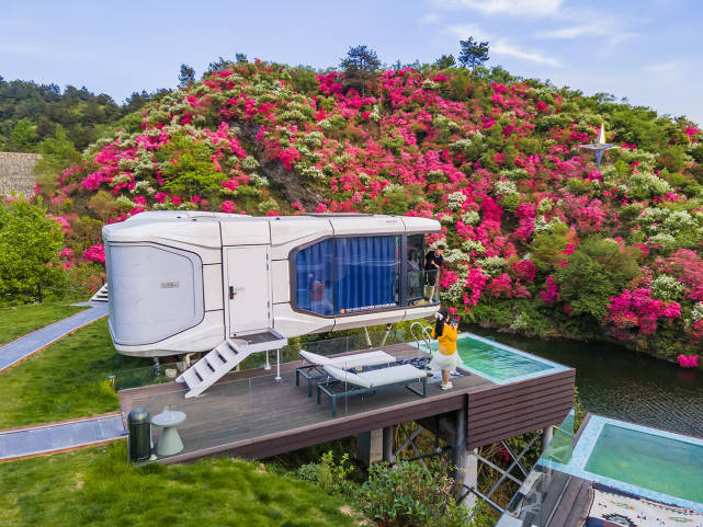不允许你还不知道这个好地方!位置离武汉不远,黄陂清凉寨景区内有一个世外桃源般的森林太空舱民宿,就在山川湖水,漫山杜鹃花海之中,名字叫树影行星。