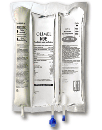 若患者不适宜用肠内营养(如胃肠道功能丧失等情况)或肠内营养不能满足机体需要时,视情况给予全肠外营养或肠内营养和肠外营养联合方案,肠外营养又称静脉营养,其实我们熟悉的输葡萄糖、复方氨基酸注射剂都是肠外营养的一种。但是单瓶输注葡萄糖、氨基酸和脂肪乳并不是最好的喂养方式。全合一(三升袋)更利于人体吸收和利用营养素,也更适合大多数患者。