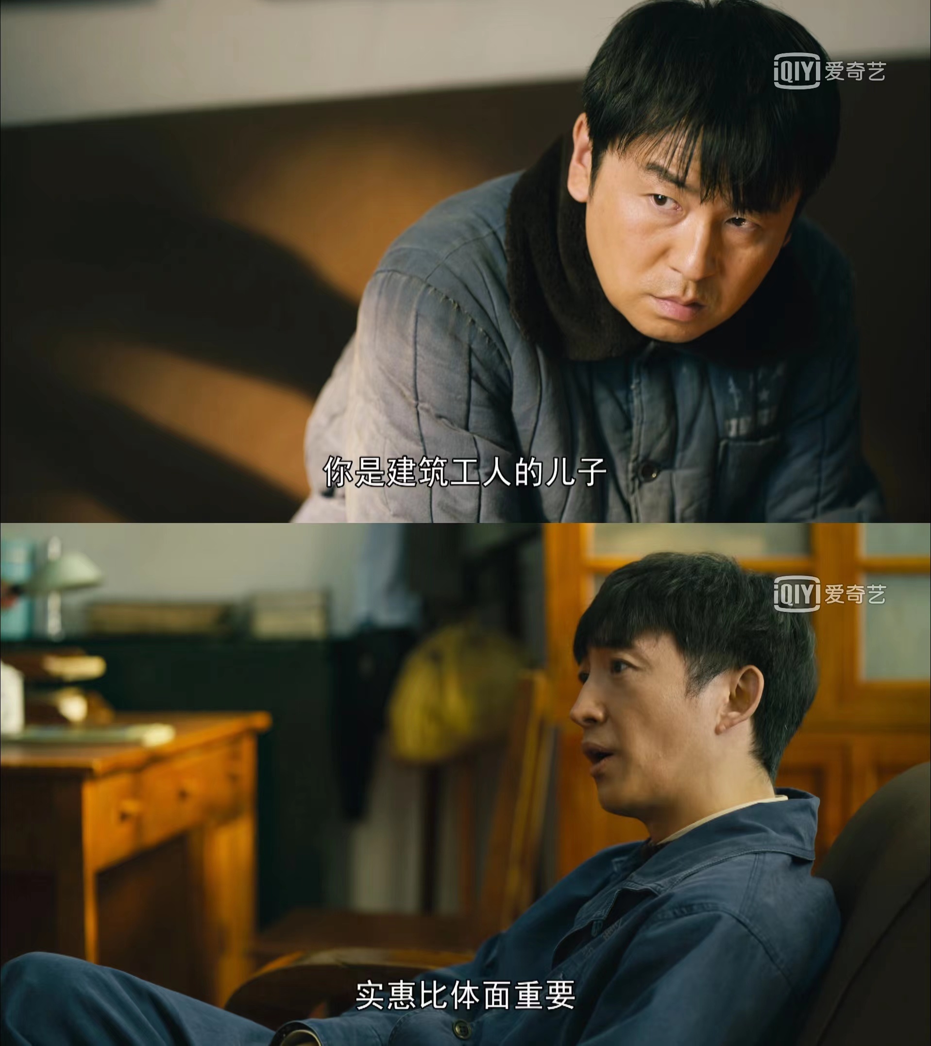 剧本里蔡晓光的出场戏,令我印象特别深刻。戏里秉昆来找他,想让他给自己在拖拉机制造厂安排工作,他却劝秉昆去酱油厂,还说了一句扎秉昆心的话:“你是建筑工人的儿子,实惠比体面重要。”读到这句十分有力量的台词,我觉得后面晓光的戏应该都是很精彩的。