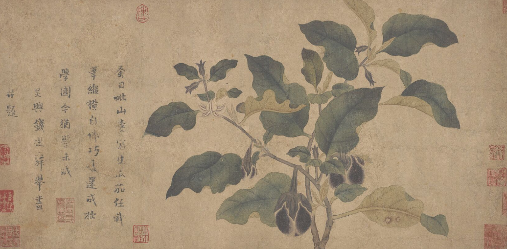 “茄”是一个形声字,从艸,加声。从发声来推测,这也更像是来自印度。在王褒、扬雄写过茄子后的三百多年,晋朝的广州刺史嵇含撰写了两广及越南植物的《南方草木状》,里面提到“茄树。交、广草木,经冬不衰,故蔬圃之中种茄”。嵇含是安徽人,“竹林七贤之一”嵇康的侄孙,这个北方人,特别说到茄子,说交州和两广的茄子“经冬不衰”,大概率是他在北方见过“经冬衰”的茄子,否则没必要大惊小怪于“经冬不衰”。从西汉的王褒到晋的嵇含,三百多年的时间,足以让茄子从四川走向中原大地,说北方的茄子是从广东往北传过去的,缺乏依据,倒是老广的这种长条型茄子,究竟是来自于四川,还是从东南亚传入,可以考究一番。