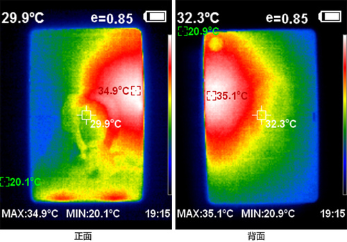 半小时最高画质60帧原神下来,发热主要还是集中在机身上半部分,即前置摄像头对应的背部区域,但是也还好控制在了35℃左右,而且手掌握持的两侧区域几乎没有明显发热,所以温度游戏这块表现还是很出色的。