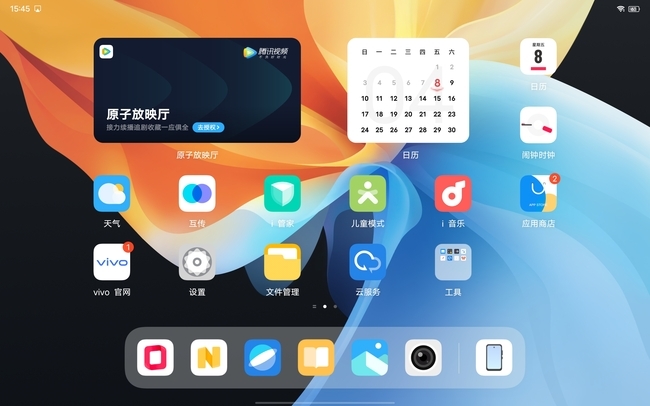 vivo Pad搭载了基于OriginOS打造的专为大屏量身定制的OriginOS HD系统,整体外观上保持了OriginOS的样式,包括图标,小组件等,软件也针对16:10的大屏进行了优化,稳定性与流畅度都非常出色。