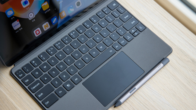 要想把平板作为一款生产力工具,键盘显然是不可或缺的。vivo Pad同样支持键盘与手写笔,与行业很多产品不同的是,vivo Pad键盘还支持触控板,面积达到5736平方毫米,作为一款平板键盘,这个面积的触控板着实不算小。其表面是一整块磨砂玻璃,摸上去很顺滑,滑动起来手感很舒服。