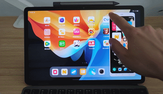 还有应用小窗,在应用打开状态下,从屏幕左下角向内滑动即可打开,加上分屏,即vivo Pad能够同时打开三个窗口,可以实现一边做PPT/Word一边微信沟通意见同时一边打开相册文件将图片等信息放到PPT/Word或发给朋友同时。