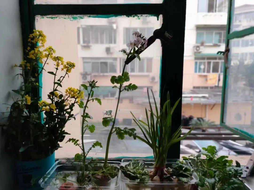 70多岁的尤奶奶,这两天特地发来了她家楼道里的“共享花园”,全部用吃剩的蔬菜头自己长出来,开出了花。