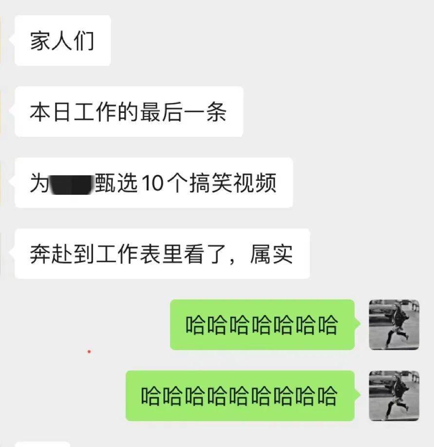 当我的老板、同事、朋友得知我室友阳性之后,给了我很多安慰和帮助,叫我一定要保持心态稳定、心情愉悦。我有一位同事,平时就是我们的笑话库,为了让我开心点,她这两天在群里发了很多搞笑短视频。今天早上打开工作计划,发现同事那一栏写着一条——为一七甄选10个搞笑视频。哈哈哈哈哈,不好意思,写到这里笑出声了。