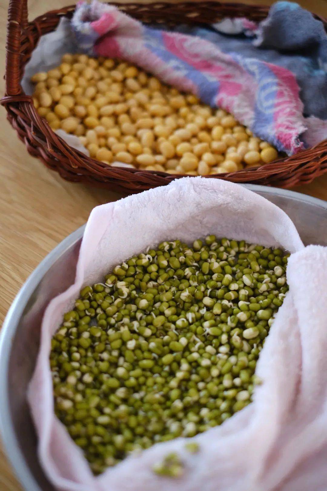 从橱柜的旮旯角里翻出了黄豆、绿豆,平时绝对不会想起来的东西。水泡了一夜,然后用毛巾和抹布盖着,一天浇三次水,早上掀开,看到绿豆居然发芽了,那一刻特别感动,喜出望外。又一想,我竟然在2022年的上海,怕第二天吃不上饭,自己在家发豆芽,真魔幻!