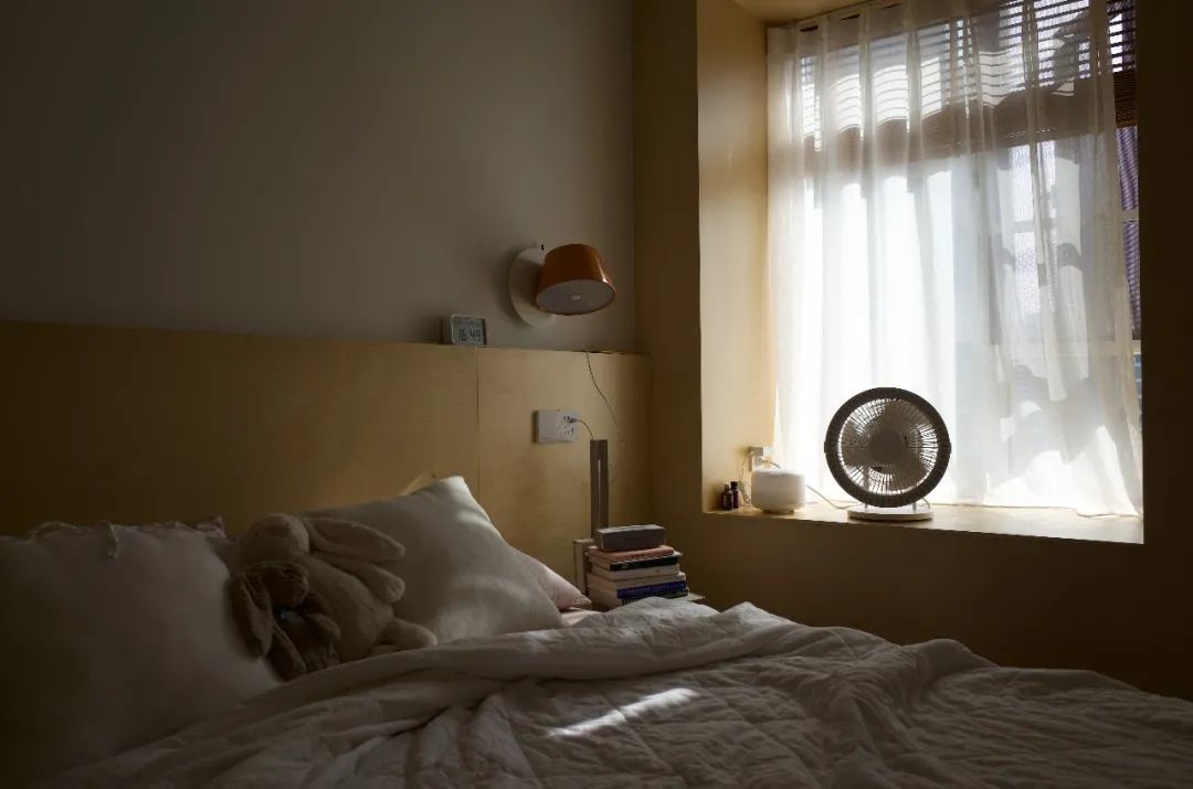 像@Fion 比较聪明,用桦木把飘窗一圈都包裹起来,瞬间就立体了起来,飘窗像是一个造型,放上风扇有点像MUJI海报。