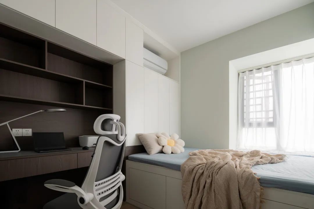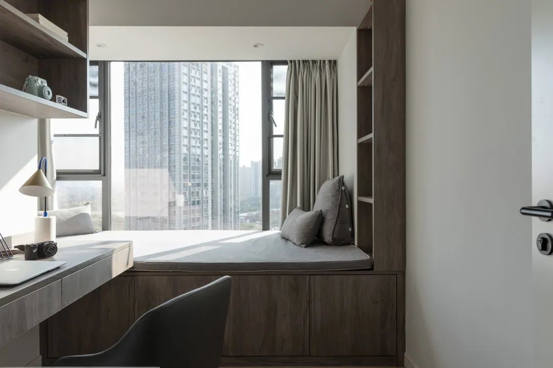 飘窗打了之后,一般会放一把休闲椅,或者改成书桌,但也有人会做成梦中地台,飘窗无限降低换成木板就成了地台。