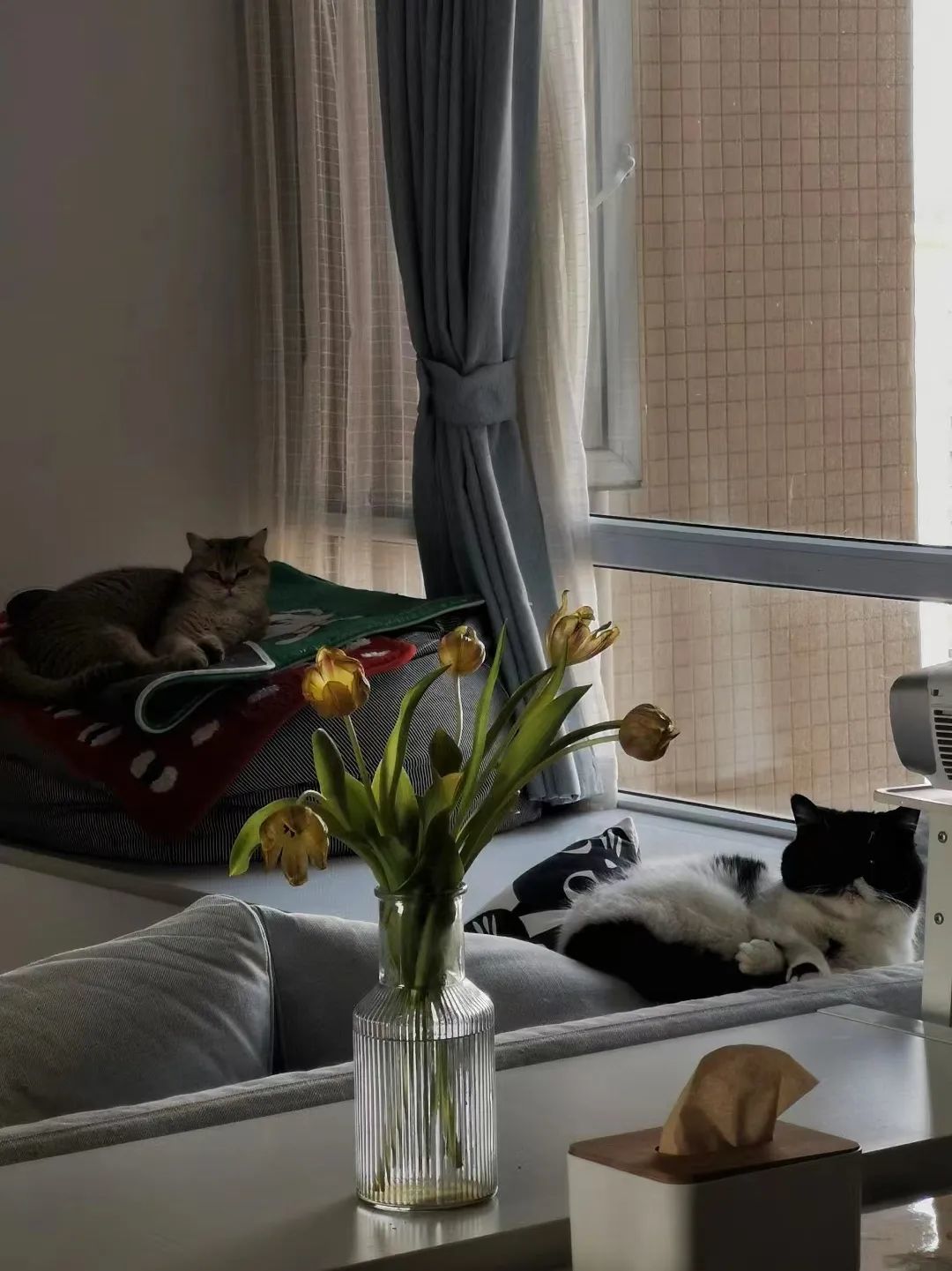 每一个飘窗都会长出一只猫,“多么喜欢在飘窗上晒太阳”,飘窗就是猫眼里的猫爬架,生人勿进一个人暗自神伤。