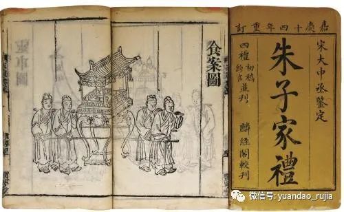 朱熹损约《书仪》而成《家礼》,首创祠堂之制,简化古礼程序,详尽规定士庶冠婚丧祭四礼,成为实现礼仪普及化、家庭化的私撰礼典。明永乐年间敕修《性理大全》收入《家礼》,《明集礼》和《明会典》等官方礼典和政书载士庶人冠婚丧祭都以《家礼》为依据。