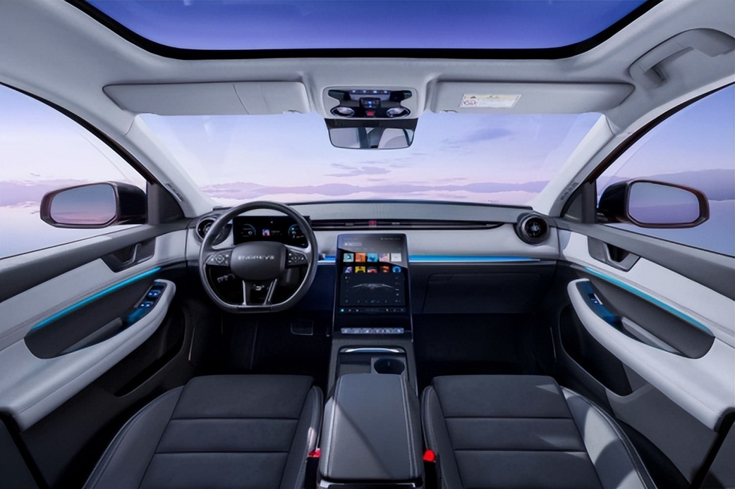 走进天际ME5的车内,看上去依旧非常的前卫,辨识度也比较高,天际ME5采用悬浮式、立体式的中控台造型,设计前卫、新颖。并且14.8英寸超大2k高清中控屏幕、画质清晰细腻;驾驶舱的仪表屏为10.25英寸高清全液晶屏幕,视觉观感更炫酷、更潮流。
