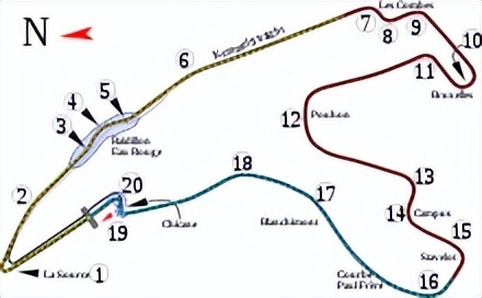 斯帕赛道赛道总长度7.004 公里,共21个弯角。