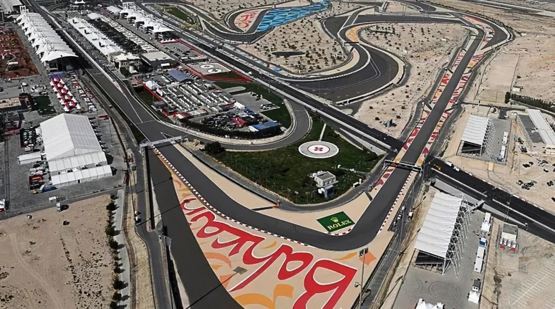 巴林赛道与沙漠毗邻,非常独特,炎热的天气对赛车散热和稳定性是巨大考验。