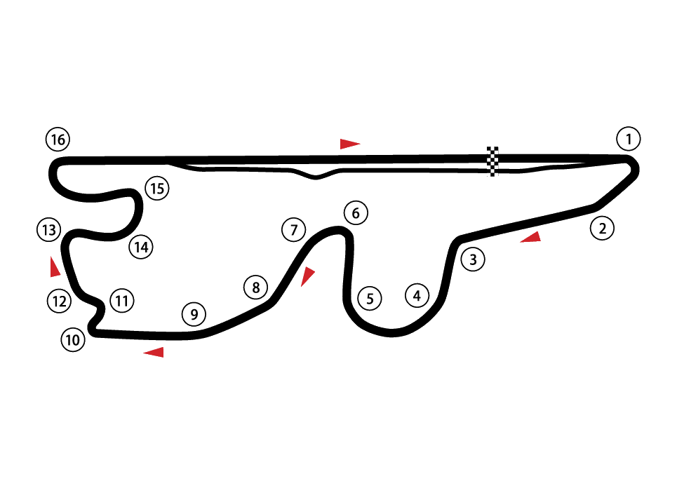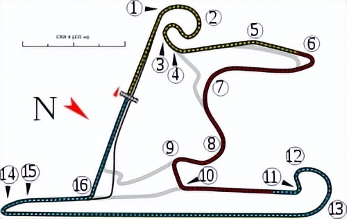 巴林赛道单圈长5.412公里,拥有15个弯角。