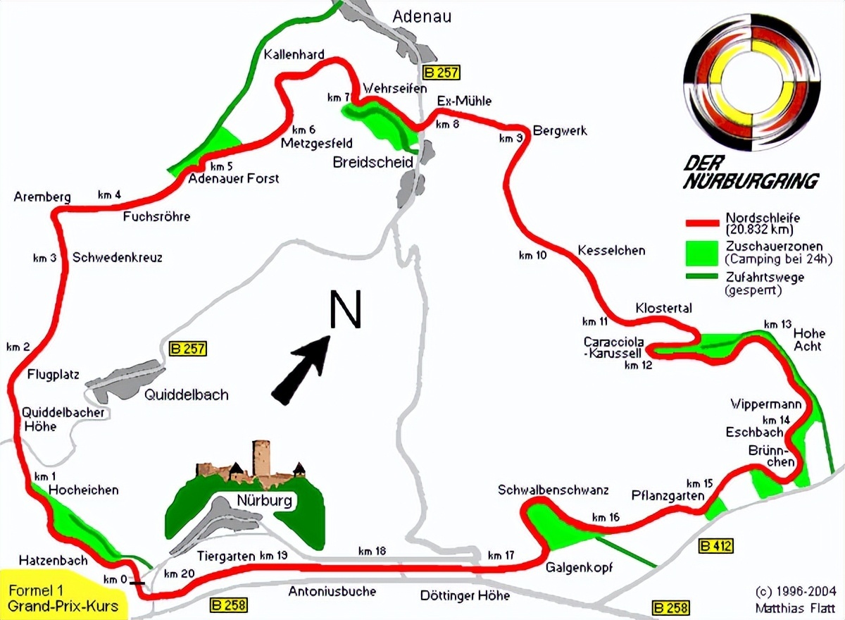 纽博格林赛道处于德国境内,在科隆市正南约40英里纽博格(Nurburg)小镇。拥有庞大沙地的纽博格林赛道对车手来说是个不可多得的既快速又安全的赛场。