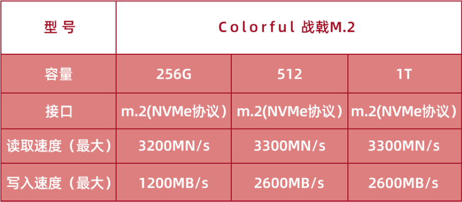 七彩虹战戟CN600提供256G、512G、1T,其目前零售价格和一线进口品牌的主流级PCIe 3.0固态(如西数SN570、铠侠RC20等)相仿,但标称读写分别能达到3300MB/s和2600MB/s的高端水准。