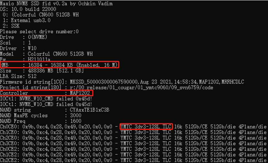 通过Flash ID工具可以查询到战戟CN600的方案信息,联芸MAP1202系列主控和长江存储YMTC 128层3D TLC。另外,联芸MAP1202系列主控虽然基于Dramless无缓存设计,但它也支持HMB加速技术,可以通过占用少量电脑内存(16MB)来构件虚拟化缓存池,实现缓存高效管理运用,从而大幅提高读写速度并降低功耗,是一种性价比较高的方案。