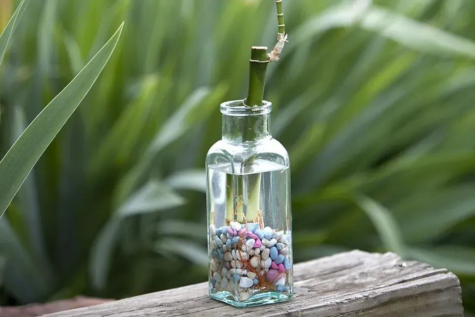 富贵竹的枝条底部大概3~5厘米浸泡在水中,摆放在一个光线明亮,环境通风的地方,避免阳光直射,可以在早上每天有一两小时左右的散射光。