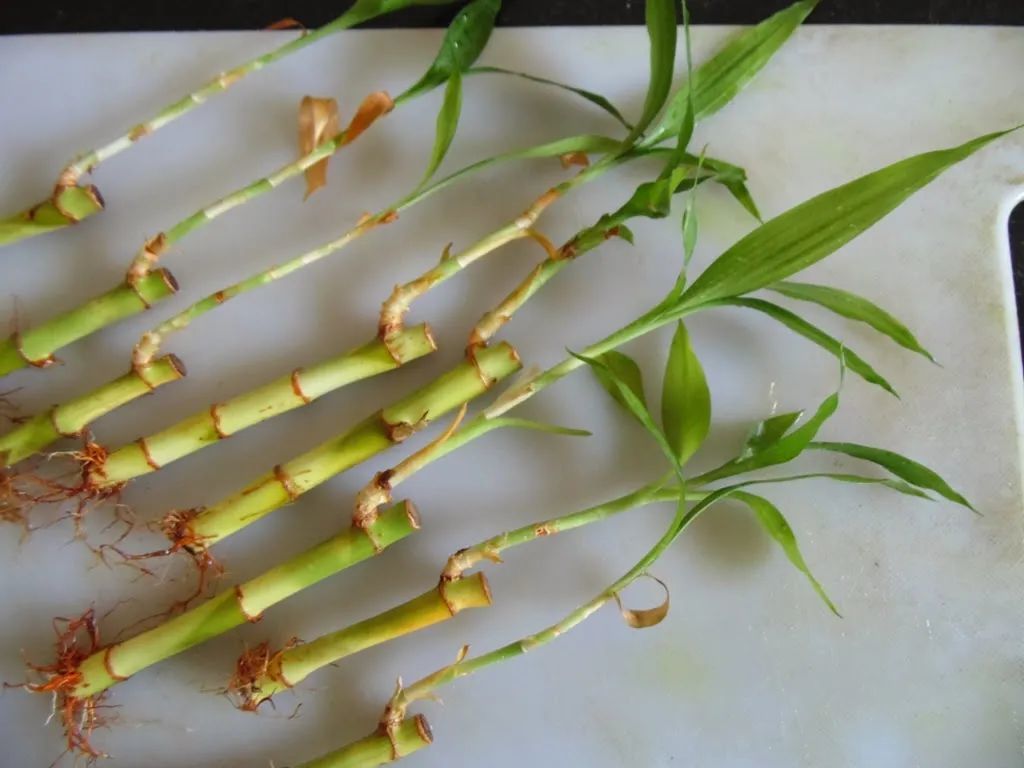 有些朋友的富贵竹枝条长得太长,就可以剪成几段,重新进行水培扦插,水培扦插的过程中,可以先将枝条底部浸泡在水中促进生根,根系长长后,再转土培,促进富贵竹快速生长。