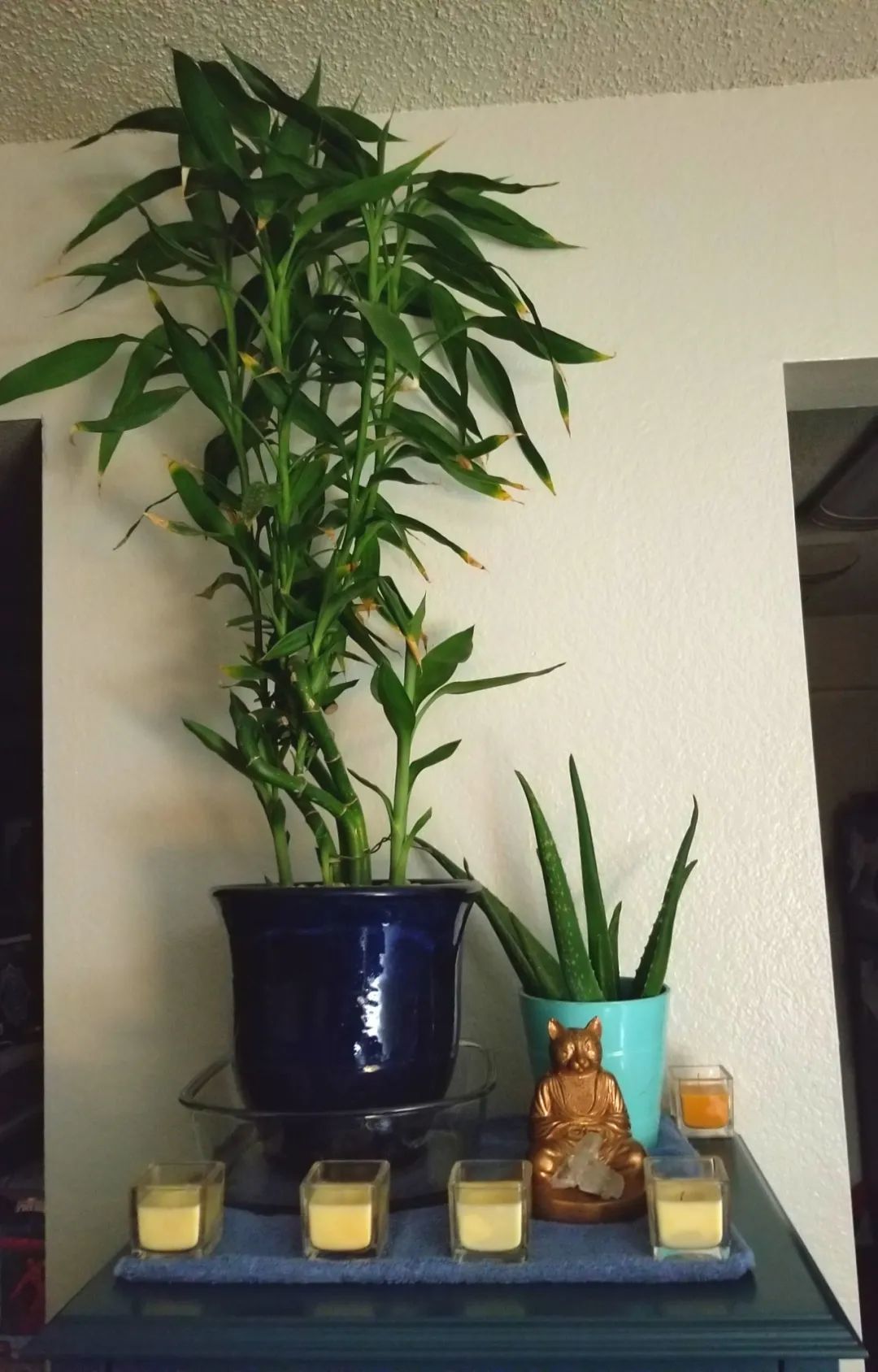 直接点燃一根蜡烛,让它慢慢燃烧,产生的蜡就可以涂在富贵竹枝条顶部的切口处,这样可以让切口完全密封起来,防止真菌感染,这样也是处理富贵竹枝条切口的好技巧。