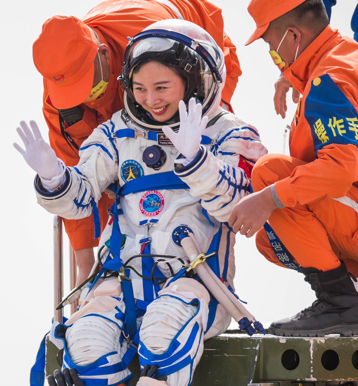4月16日,神舟十三号载人飞船返回舱在东风着陆场成功着陆。这是航天员王亚平安全顺利出舱,身体状态良好。