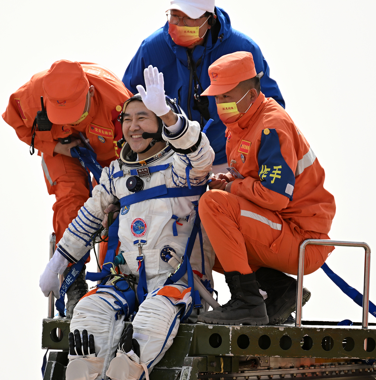 4月16日,神舟十三号载人飞船返回舱在东风着陆场预定区域成功着陆。这是航天员翟志刚安全顺利出舱,身体状态良好。