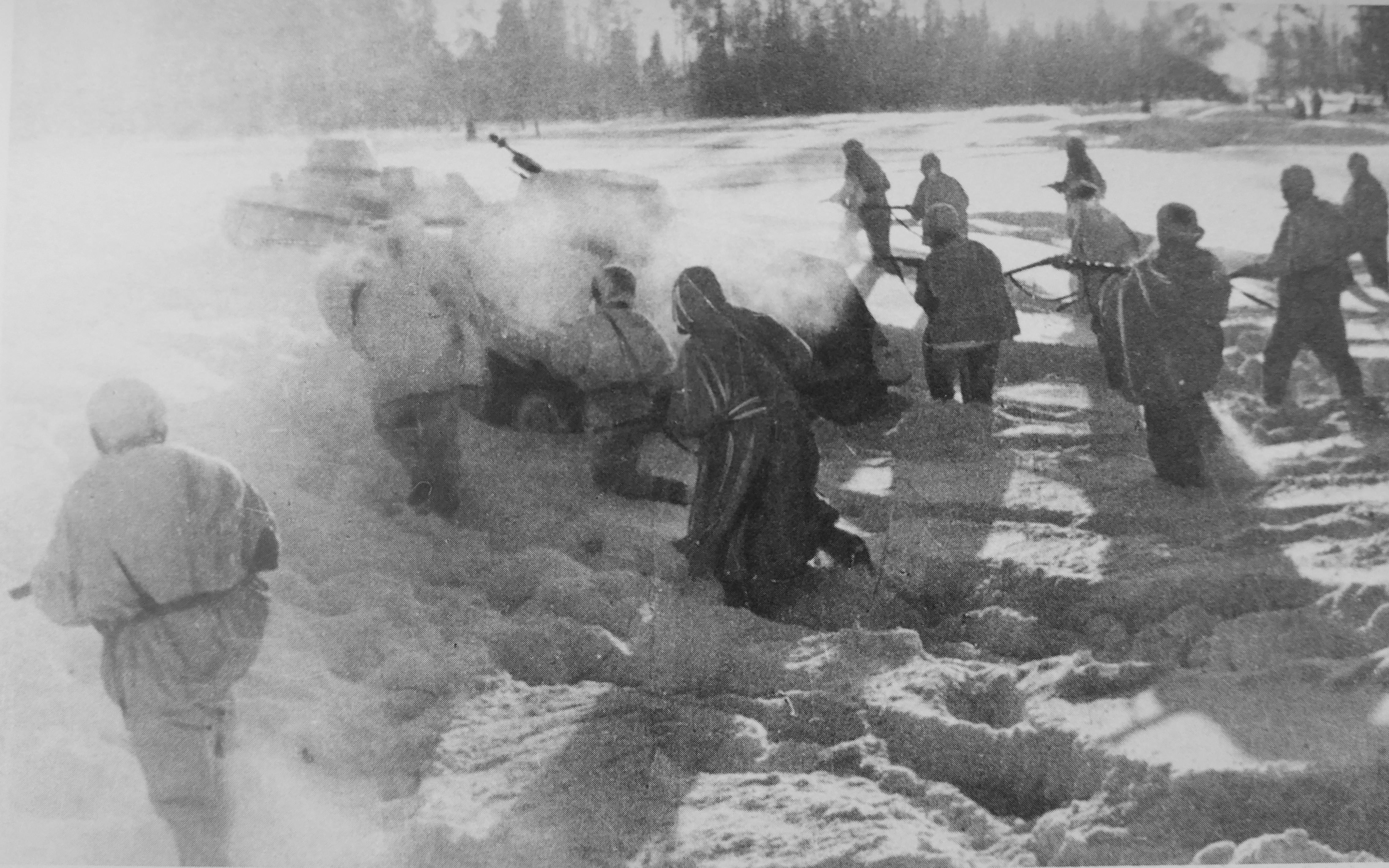 1941年12月莫斯科反攻第33集团军近卫摩托化步兵第1师在T-40坦克掩护下进攻