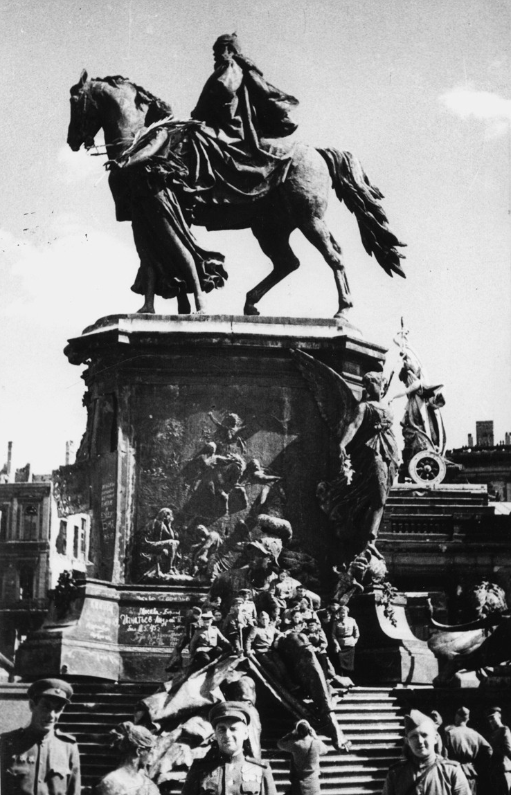 1945年5月苏军军官在柏林威廉一世纪念碑前