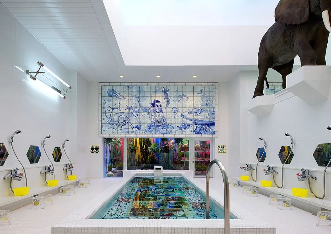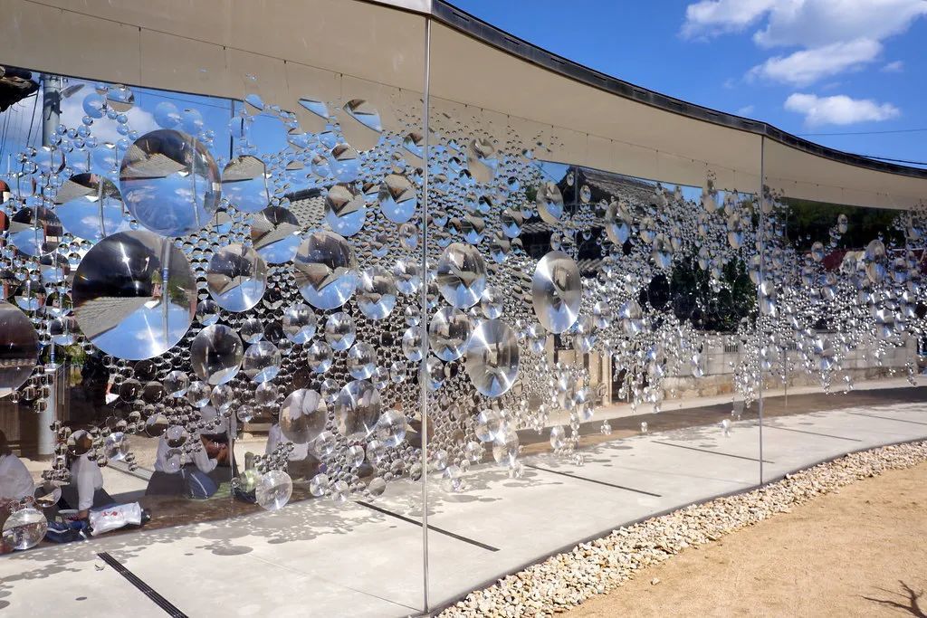 安藤忠雄操刀的新馆“Valley Gallery”正如其名,地处李禹焕美术馆对面的群山之中,坐落于峡谷之中,位置上在Benesse House和地中美术馆之间。这座建筑是安藤忠雄以神社形象为基础设计的半户外建筑,与草间弥生《纳西瑟斯的庭园》在室内外都形成了有机的结合。