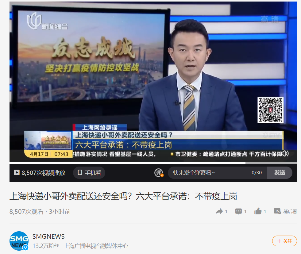 IT之家 4 月 17 日消息,据上海电视台报道,针对市民对外卖员身体健康情况的关切,叮咚买菜、饿了么、美团、盒马、闪送、京东六大平台均承诺,不带疫上岗。