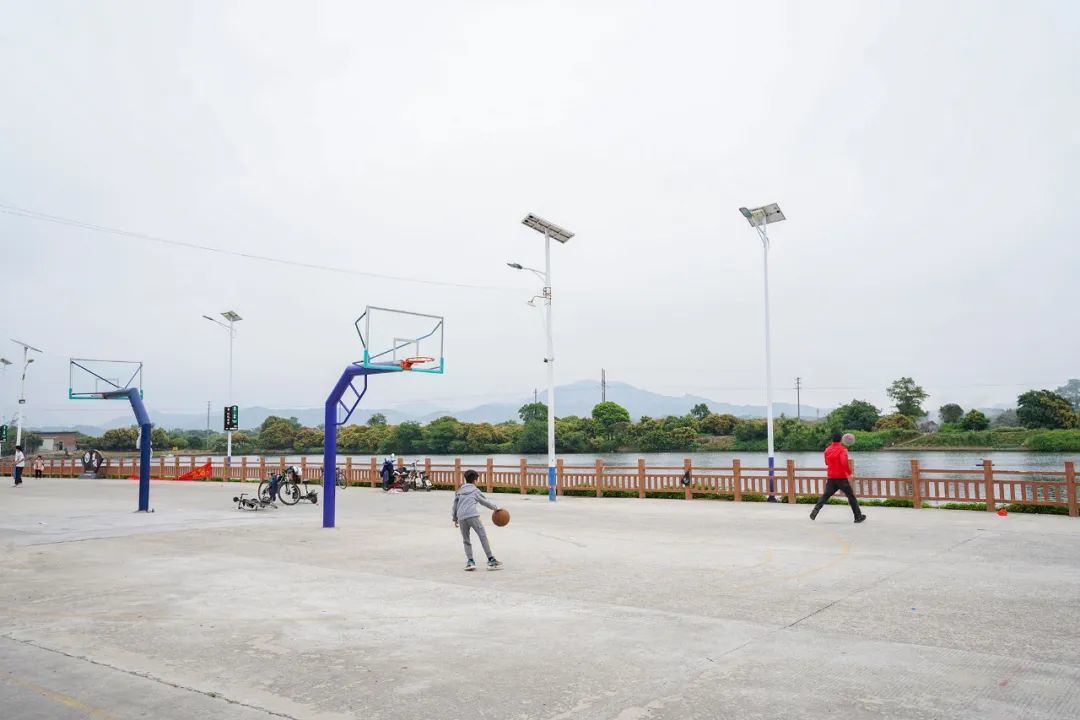 车可以一直开到池塘前面的空地上,这里原本是一片无人打理的杂草地,后来,村委将旧房子维修了一通,这片空地也变成了蓝球场,每天,都有很多孩子在这里打蓝球。