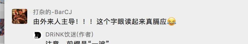 置顶评论获得了最多的赞同。Mr.Zhang指出,作为舶来品的鸡尾酒国内发展的时间本来就不长,还处于一个市场较为混乱、人才少、行业标准不完善的初级阶段,这个时候莫名站队讲调酒师的本土化,无异于搬起石头砸自己的脚。