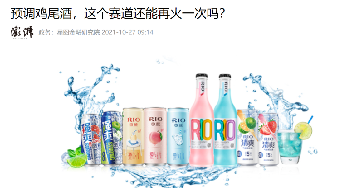 目前来说,持续增长仍然是这个赛道的大基调,RIO鸡尾酒母公司百润股份2021年第三季度营业总收入同比增长30.98%至7.03亿元;水井坊2021年第三季度的公司营业收入同比增长38.93%至15.86亿元;古井贡酒2021年第三季度公司营收同比增长21.37%至30.95亿元;