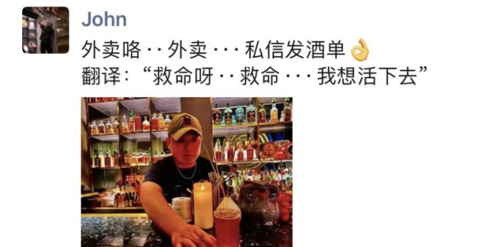 (今年4月初,再次遭遇疫情的John在朋友圈宣传起了外卖)