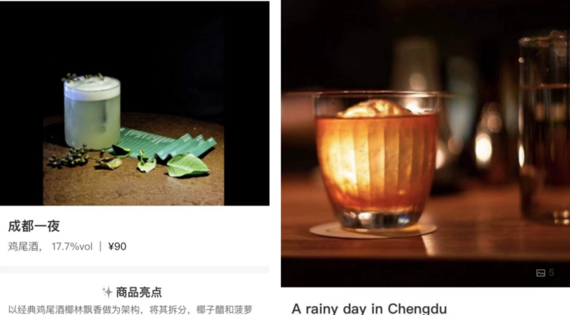 它们的共同特点是都是利用了一些经典“川菜元素”,例如花椒、辣椒等,然后在名字上赋予意向,希望饮用者能够利用通感实现身临其境。在“A rainy day in chengdu ”这杯酒的评论下面,甚至有顾客品出了雨后青城山的味道。