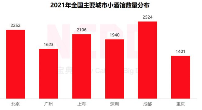 成都可能是中国最能证明“酒吧经济”价值的城市。根据“NCBD(餐宝典)”发布的《2021中国小酒馆行业发展研究报告》显示,成都“小酒馆”数量全国第一,也是总量唯一超过2500家的城市,比第二名的北京多出了近300家。