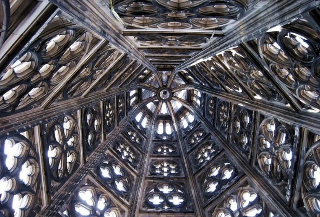有了尖肋拱顶和飞扶壁,建筑可以做得很高,是一种“飞升”的建筑格局,让人有一种离开地面或尘世的感觉。
