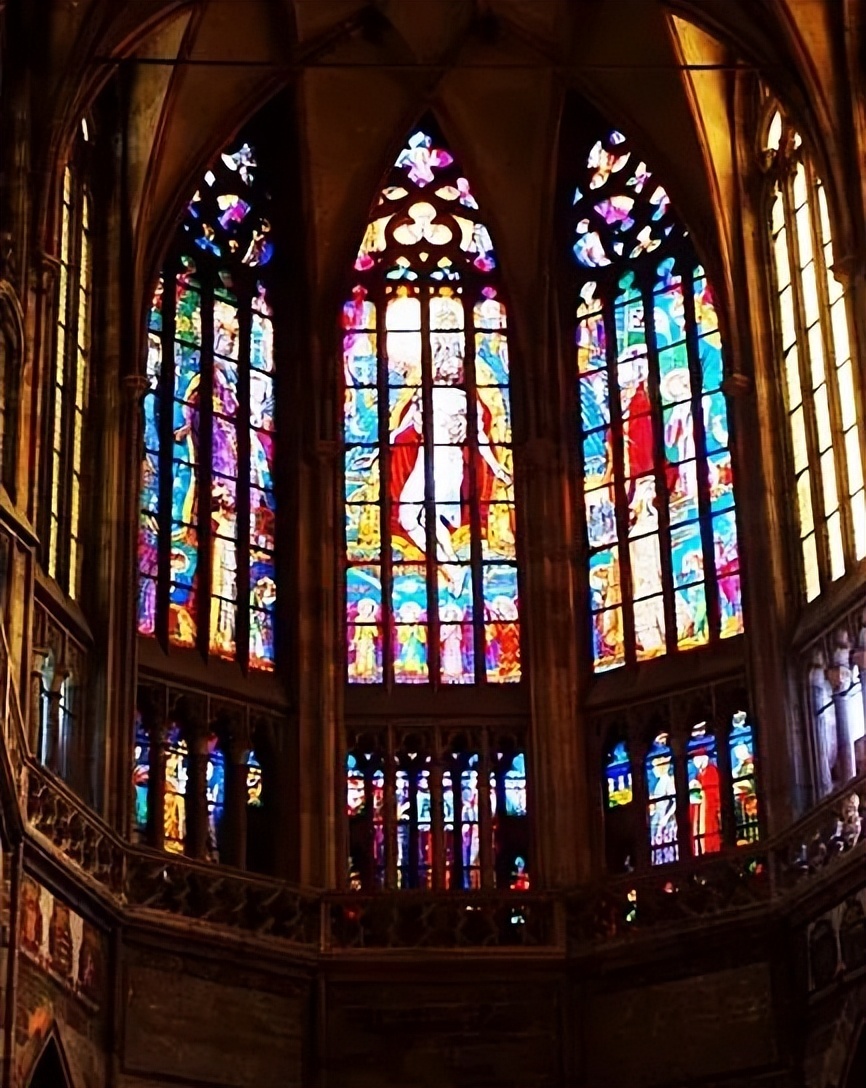 高耸而中空的建筑,再结合镶嵌有彩色玻璃的长窗,使教堂内产生一种浓厚的宗教氛围,庄严肃穆,且带有一丝阴森恐怖。