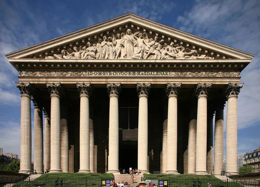 希腊式建筑基本是三角形的门楣,下面一根根的希腊柱。