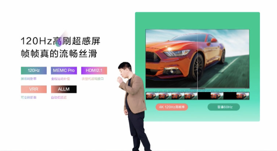 接下来是康佳 A6 Pro 智慧场景屏的硬件配置,该电视配备 4K 120Hz MiniLED 高刷超感屏,支持 MEMC Pro 运动补偿、VRR 可变刷新率、ALLM 自动低延迟,并配备 HDMI 2.1 接口。