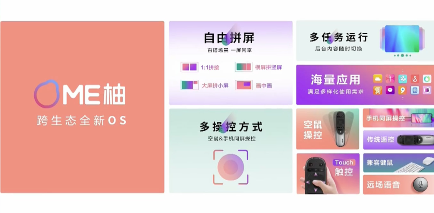 新场景方面,ME 柚 OS 系统支持自由拼屏,还能够手机投屏,每个窗口的音量都可以独立控制。