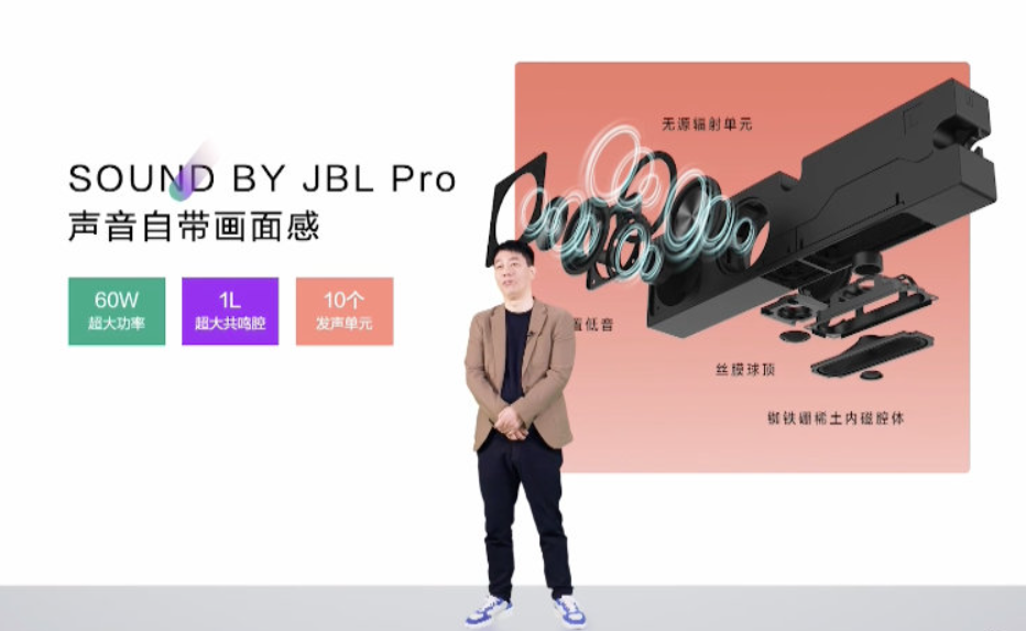 音频方面,该智慧场景屏配备 JBL Pro 60W 音响,1L 超大共鸣腔,拥有 10 个发声单元。