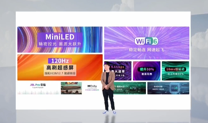 此外,该智慧场景屏搭载四核 A73 处理器,配备 4+64GB 存储,支持 Wi-Fi 6,后续将 OTA 支持杜比视界和杜比全景声。