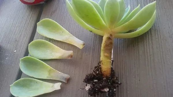 一旦发现多肉植物的叶子已经开始变半透明了,而且多肉的叶片一碰就掉,将这些叶片去掉后,将整个植株拔起来,会发现根部根本就没有长好,而且多肉的枝条也开始变色了,一般是变黄,就像水果开始腐烂一般,这个时候就是感染了茎腐病。