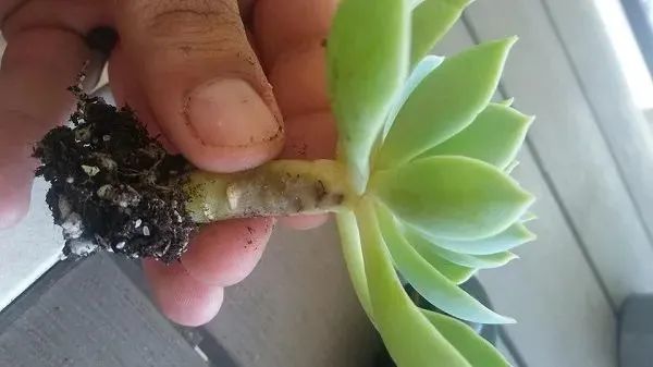 这个时候要及时将盆栽多肉植物连带土壤拔起来,用小花盆栽种的多肉,可以轻松地脱盆,以便更好地检查根系的状况,也不要害怕多肉从花盆里取出会影响它生长,实际上,定期检查的它的根部健康状况是非常有必要的。