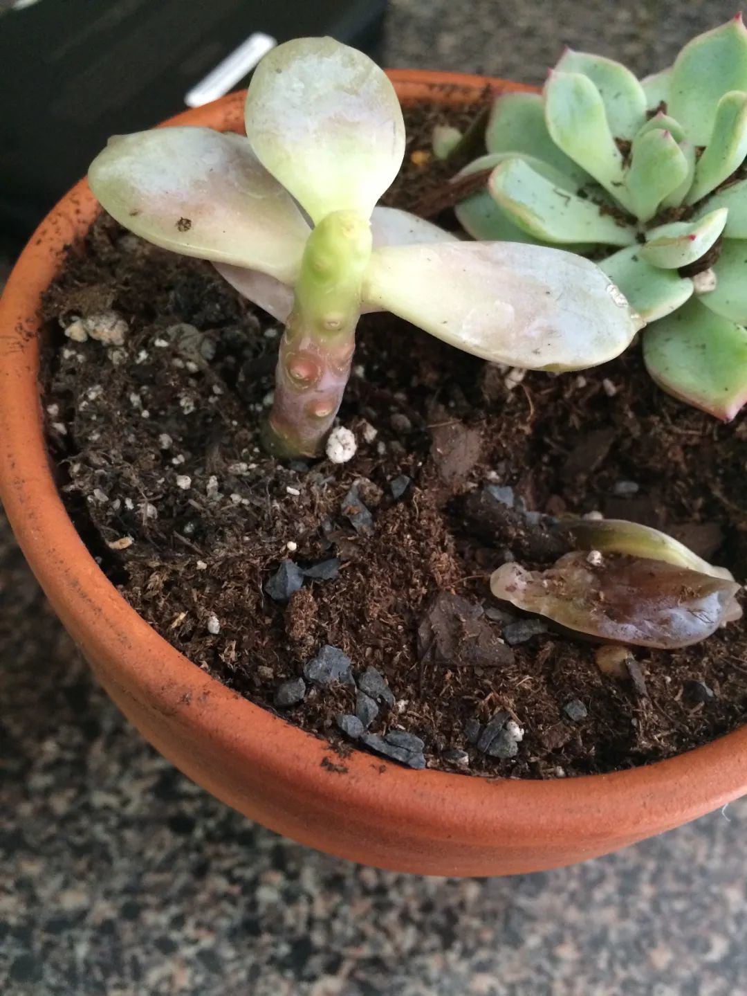 这些多肉感染黑腐病后,叶子会不断脱落,通常就是由于浇水过多,环境潮湿或通风不佳引起的,当然也有可能是无法抵抗病虫害。