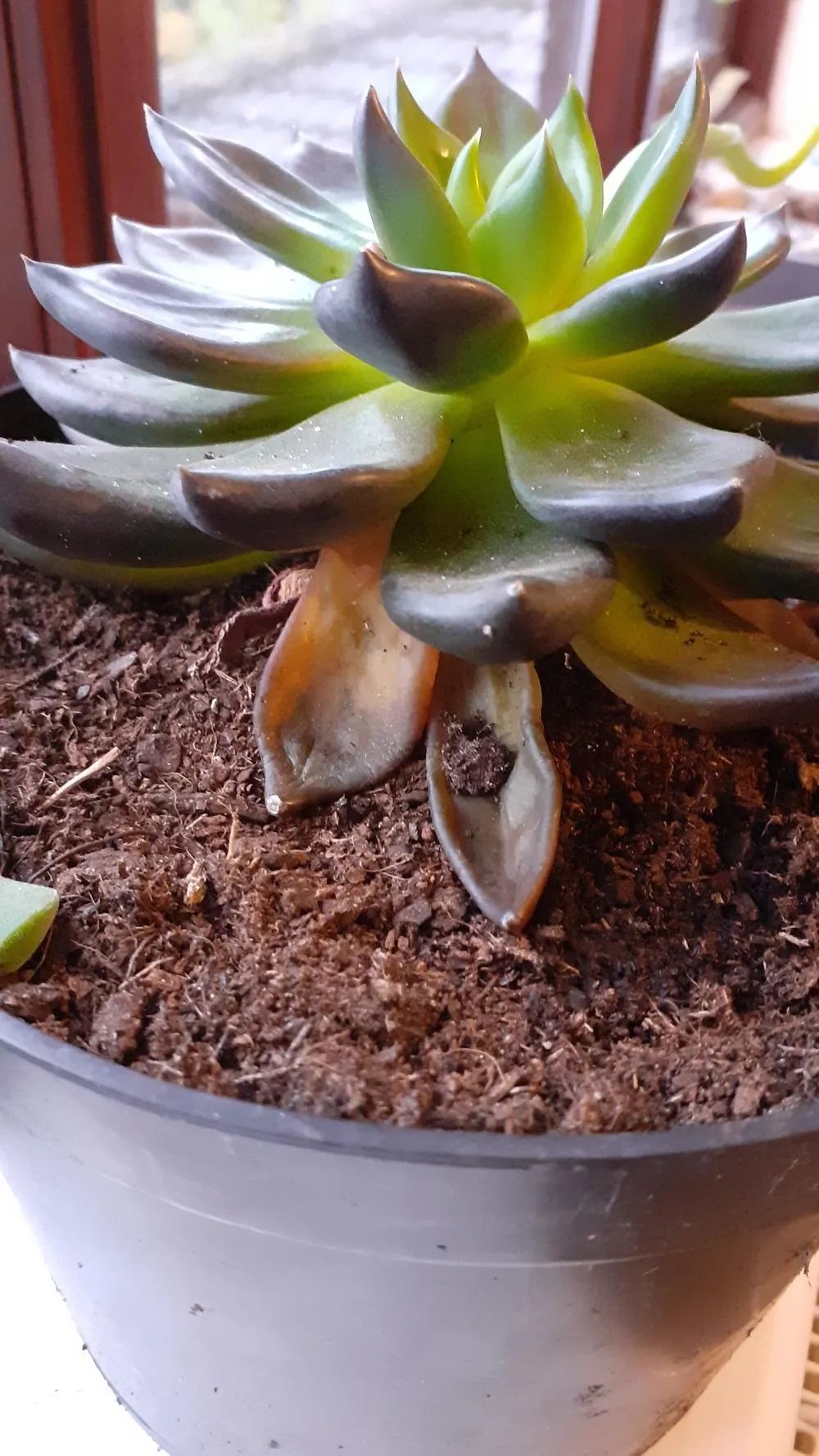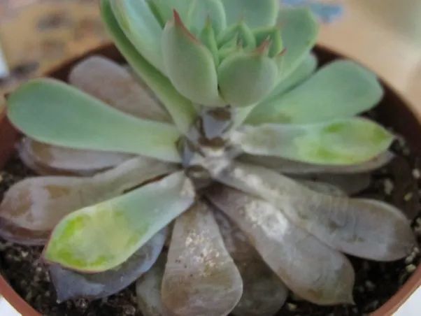 浇水过多后,盆土里长期有水分,会导致根部窒息,最终会导致叶片无法正常地进行光合作用,叶子就会逐渐发黄腐烂,这也是很多人养死多肉的原因。