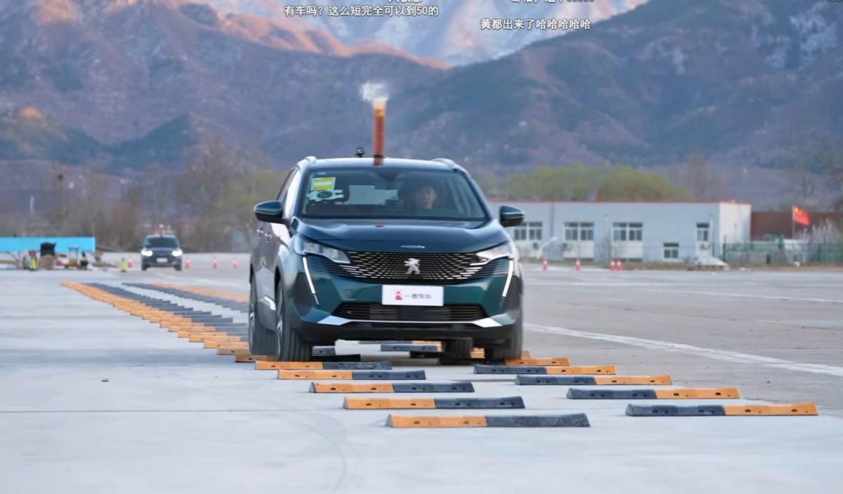 而在接下来的车身稳定测试中,标致全新4008在保持50KM/H的速度、车顶放置一个水柱经过减速带的情况下,取得了五辆车中洒水最少的成绩。这说明它的车身过滤上下震动的能力更强,也证明了其底盘的出色舒适性。